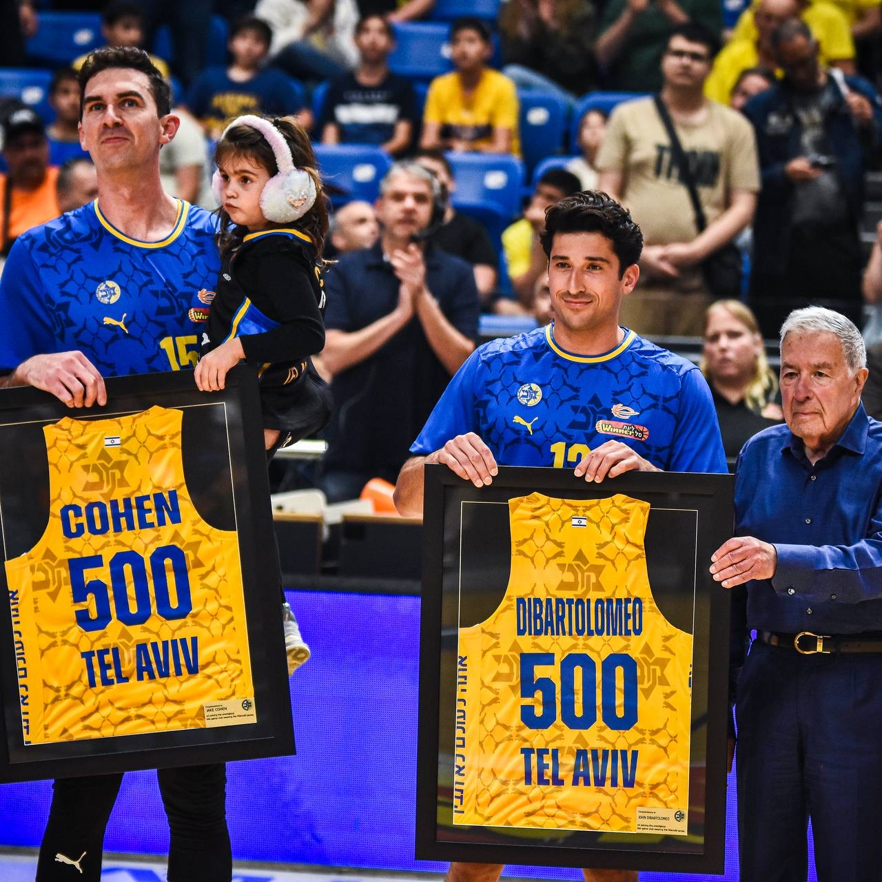 Prior to the club’s quarterfinal clash against Nes Ziona, the pair of naturalized Israelis from the United State of America were feted by the fans as they received a special framed jersey emblazoned with the number 500 on the back, acknowledging their accomplishment.